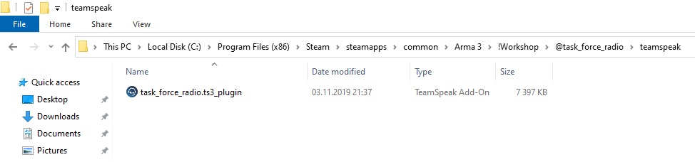3. Atveram TFAR addona folderi un uzinstalējam Teamspeak plaginu: