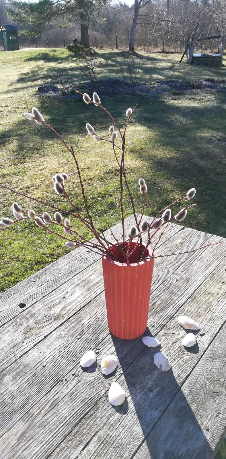 Pūpolu kompozīcija Švanderos uz pagalma galda