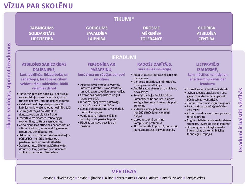 Vīzija par skolēnu, vērtības un tikumi