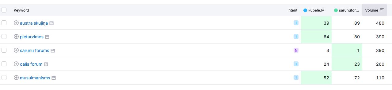 Vienotie meklēšanas termini starp kubele.lv un sarunuforums.lv